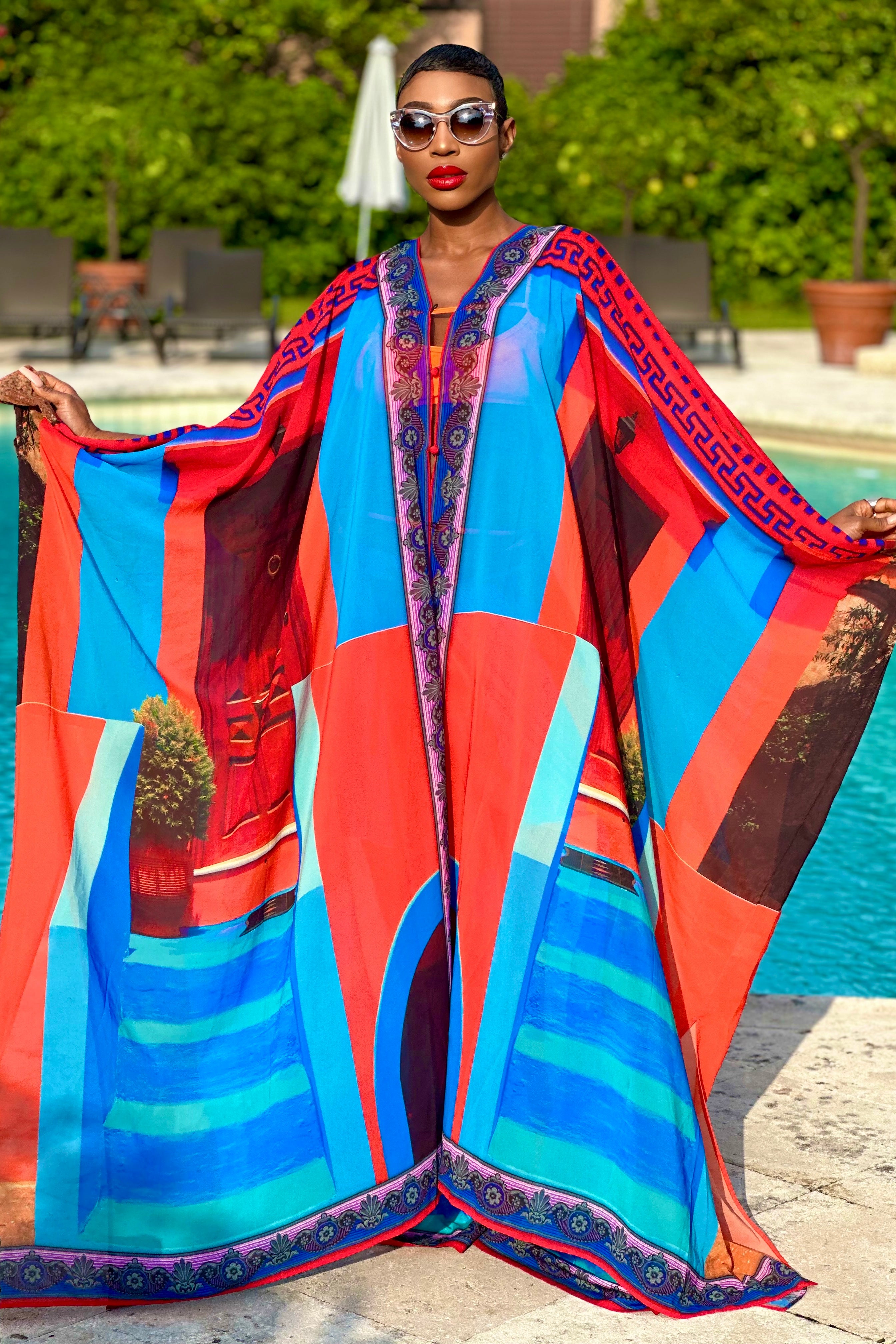 Style meets ease with the Xiomara Goddess Kaftan—perfect for layering over sleek ensembles or belting for a cinched, street-style moment. It offers the comfort of a robe with the presence of a runway piece.