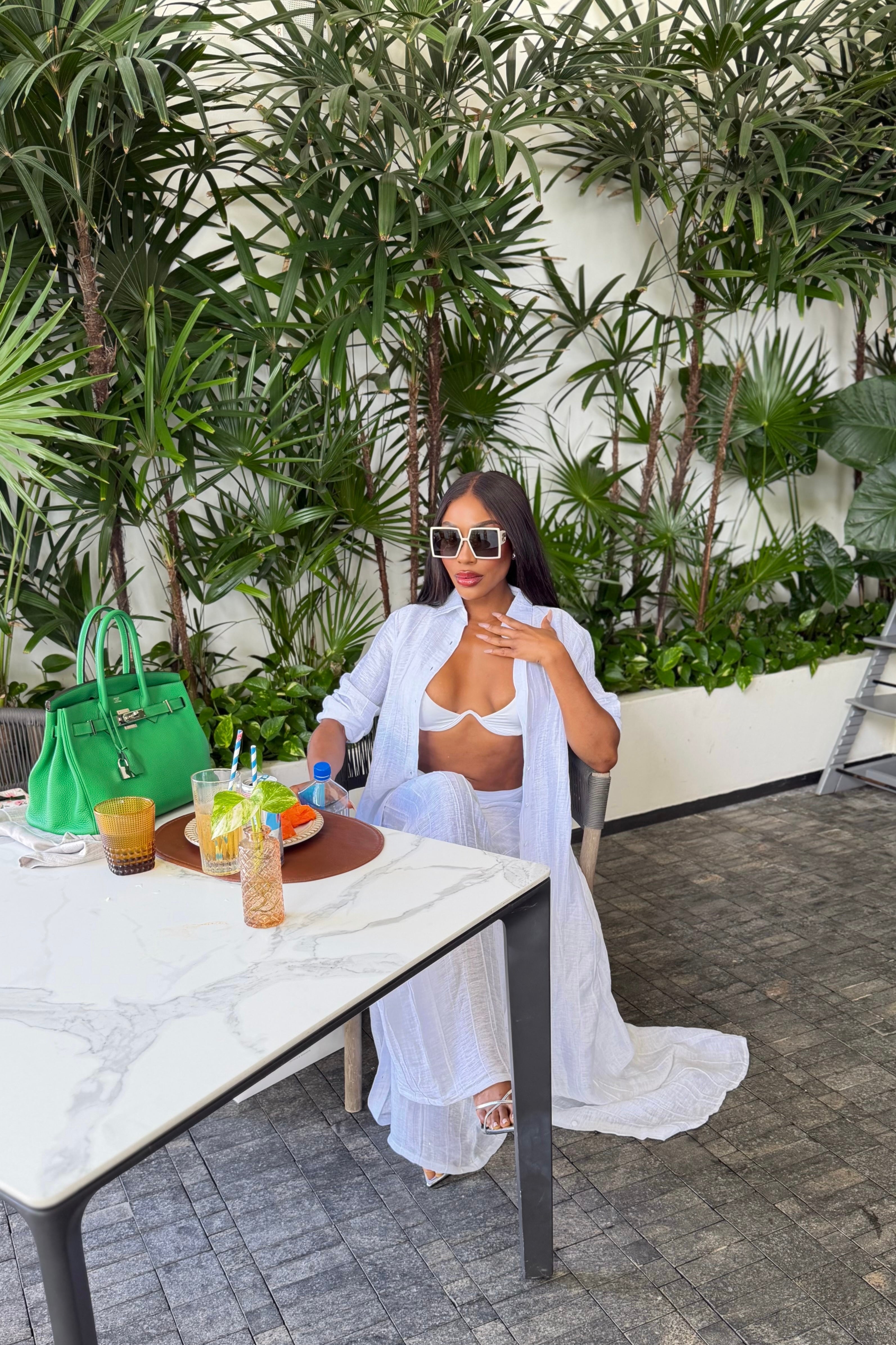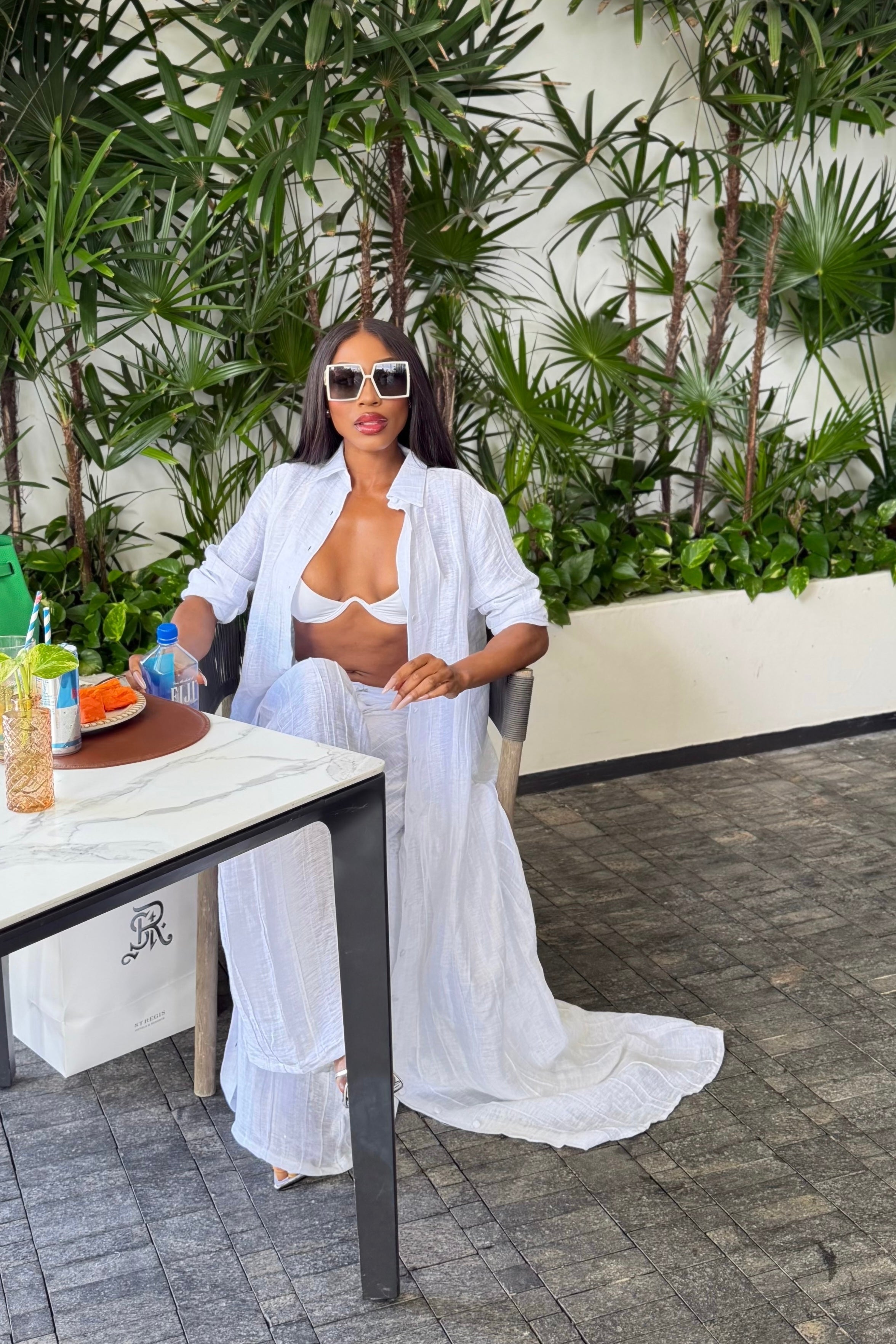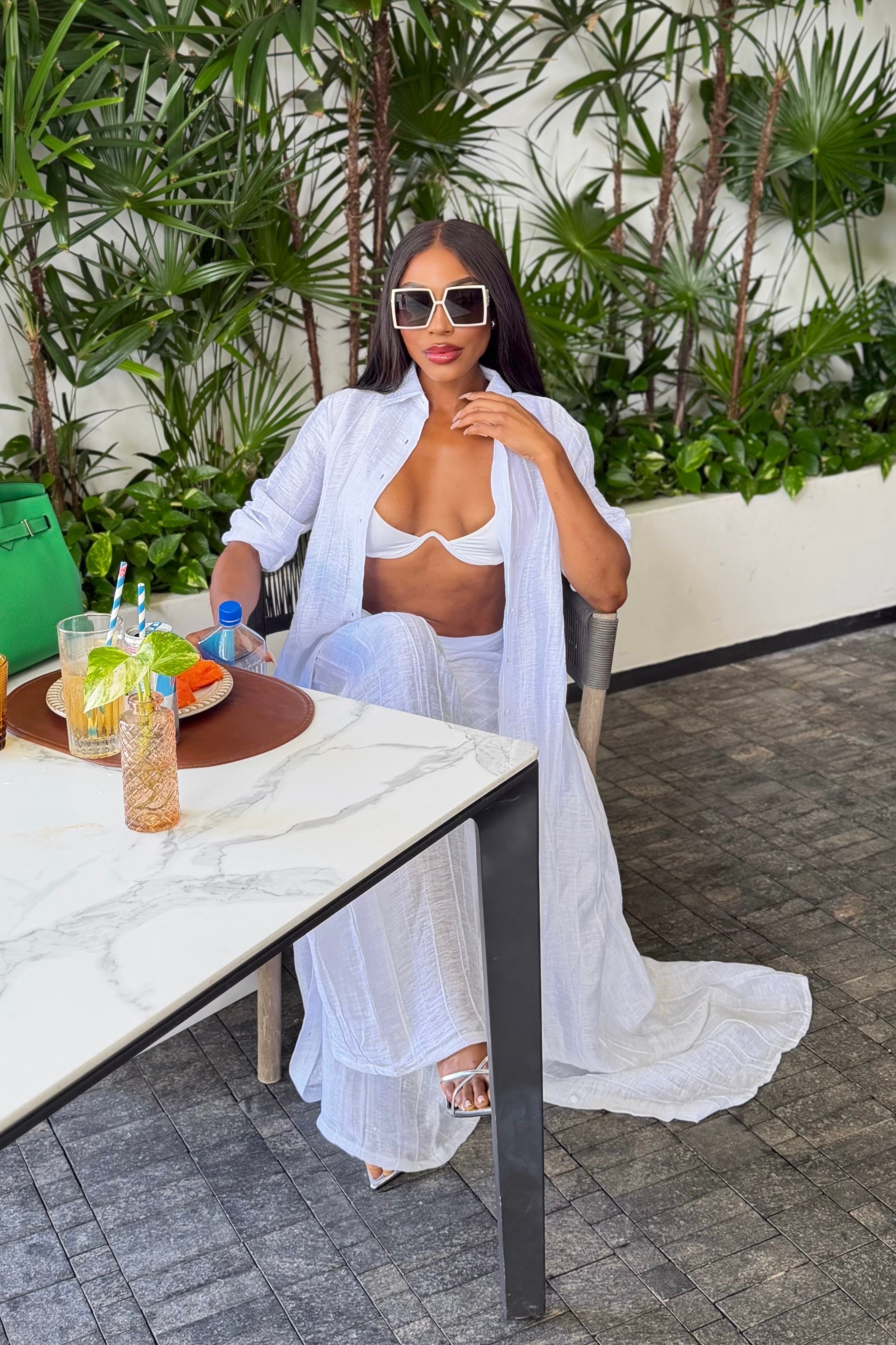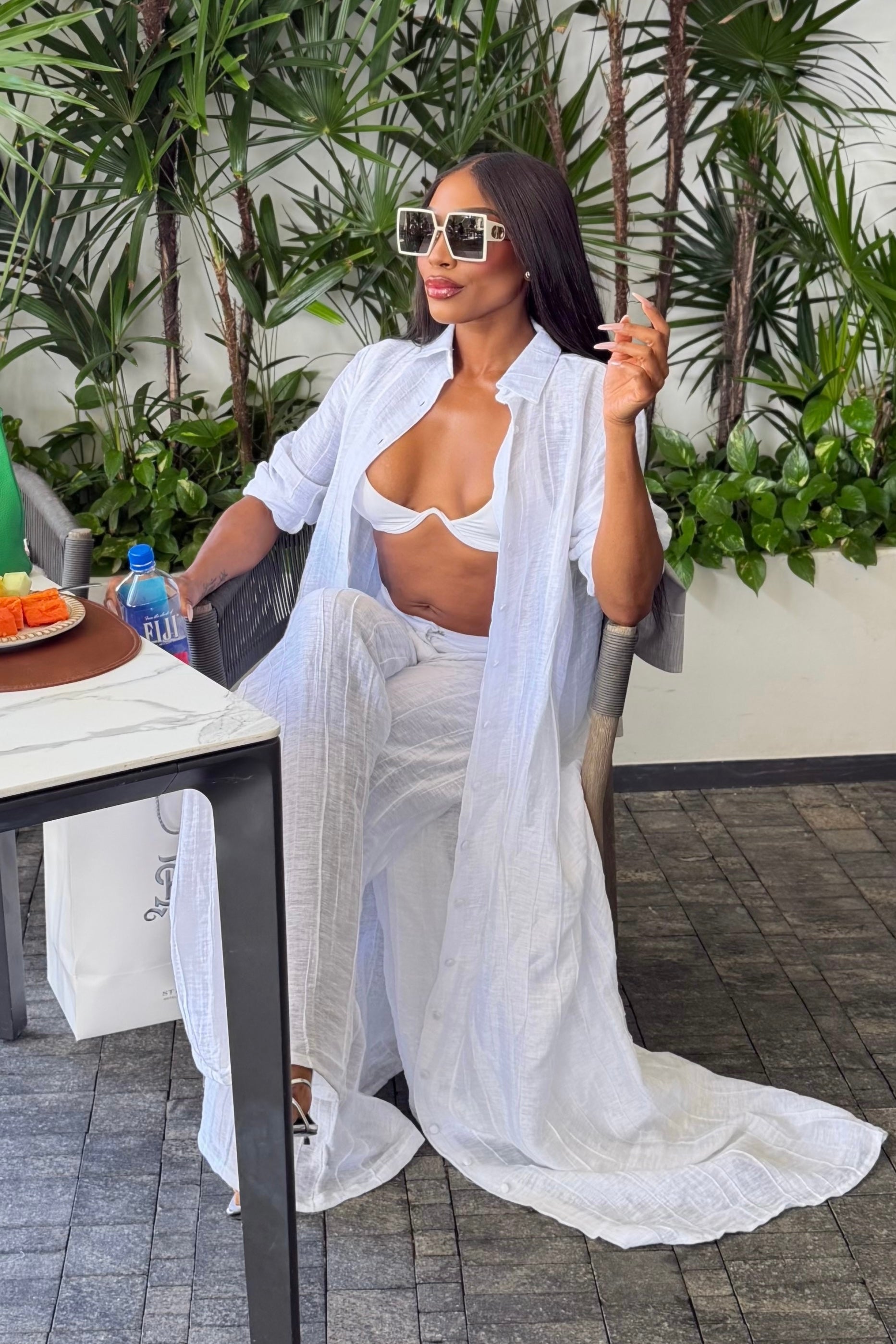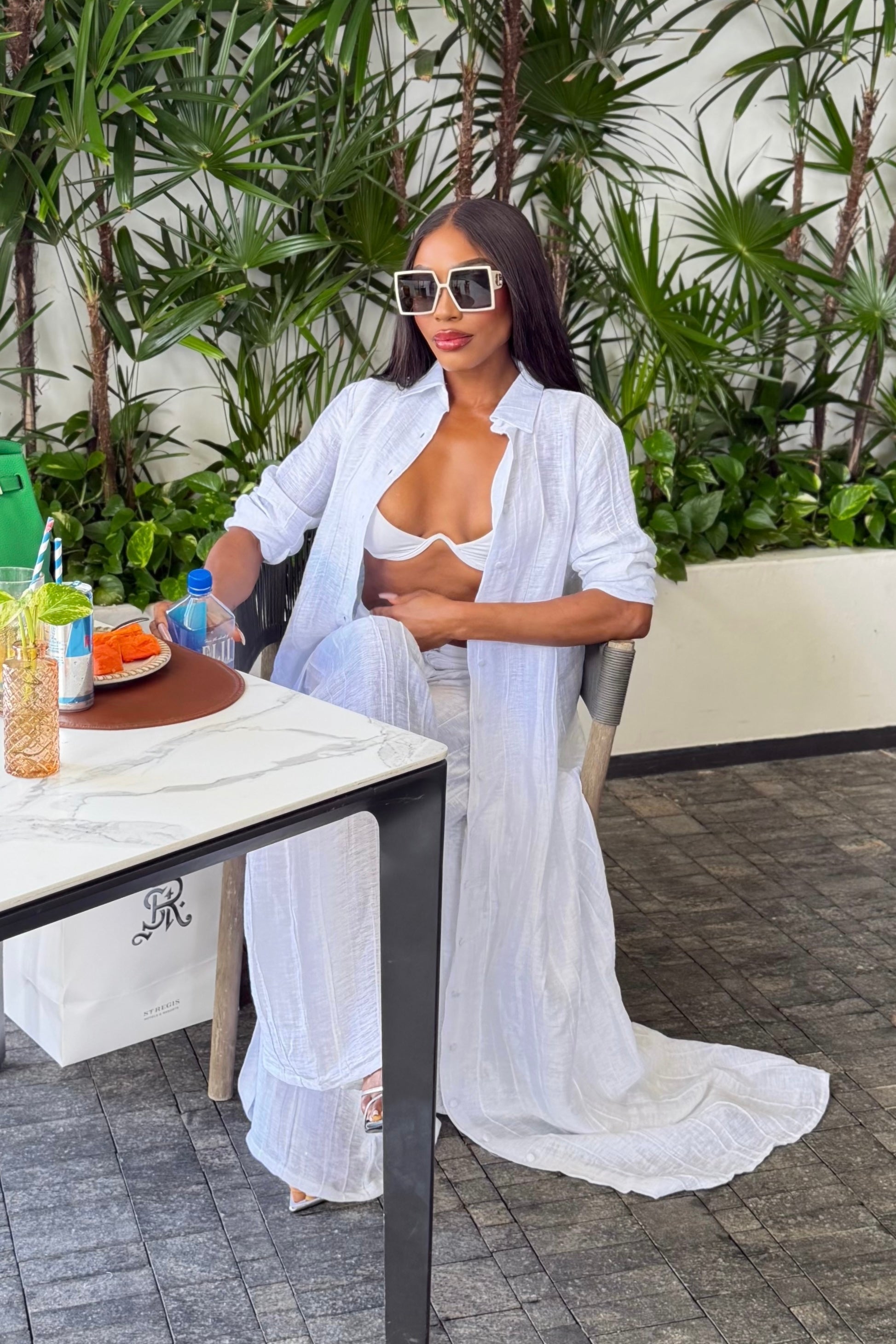 Our Selena Shirt Dress in White is the perfect warm-climate ensemble. Crafted from lightweight fabric with a figure-flattering silhouette, this dress will keep you cool and comfortable in even the hottest temperatures. Accent with colorful accessories for a playful look or keep it simple and sophisticated. Let the air dance around your skin as you walk along the beach.